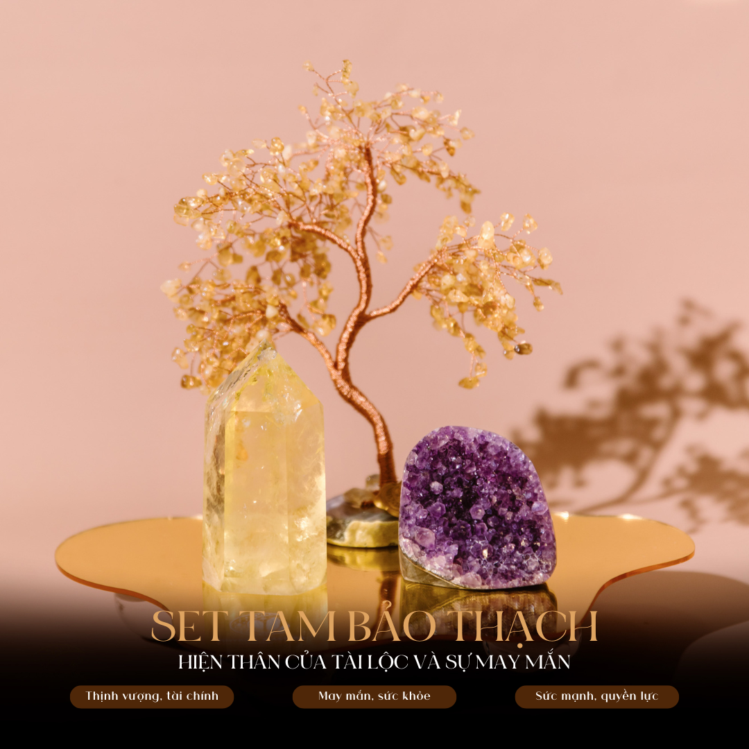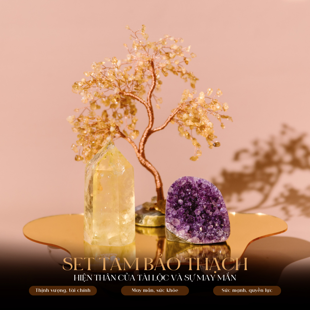 Thỉnh Ngay- Bộ các tinh thể siêu cấp được yêu thích nhất kết hợp với Cây Tài Lộc Thạch Anh.