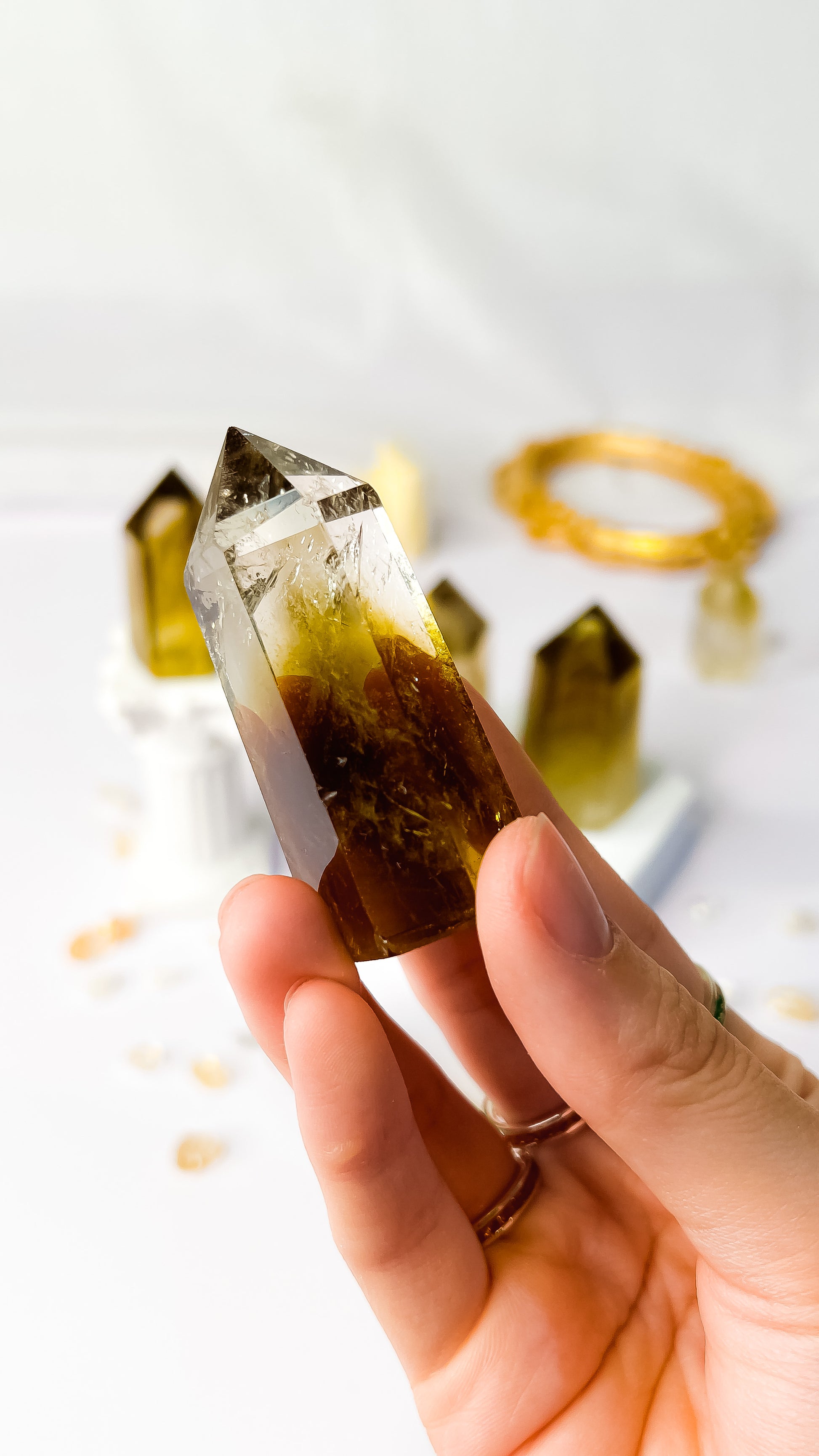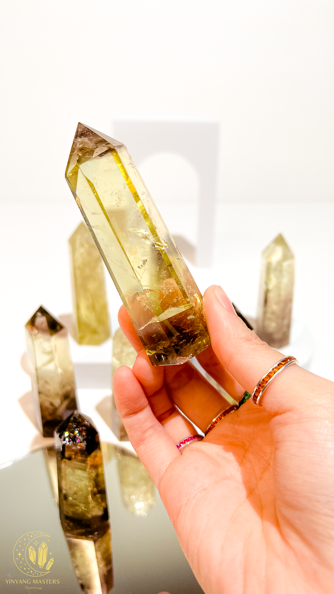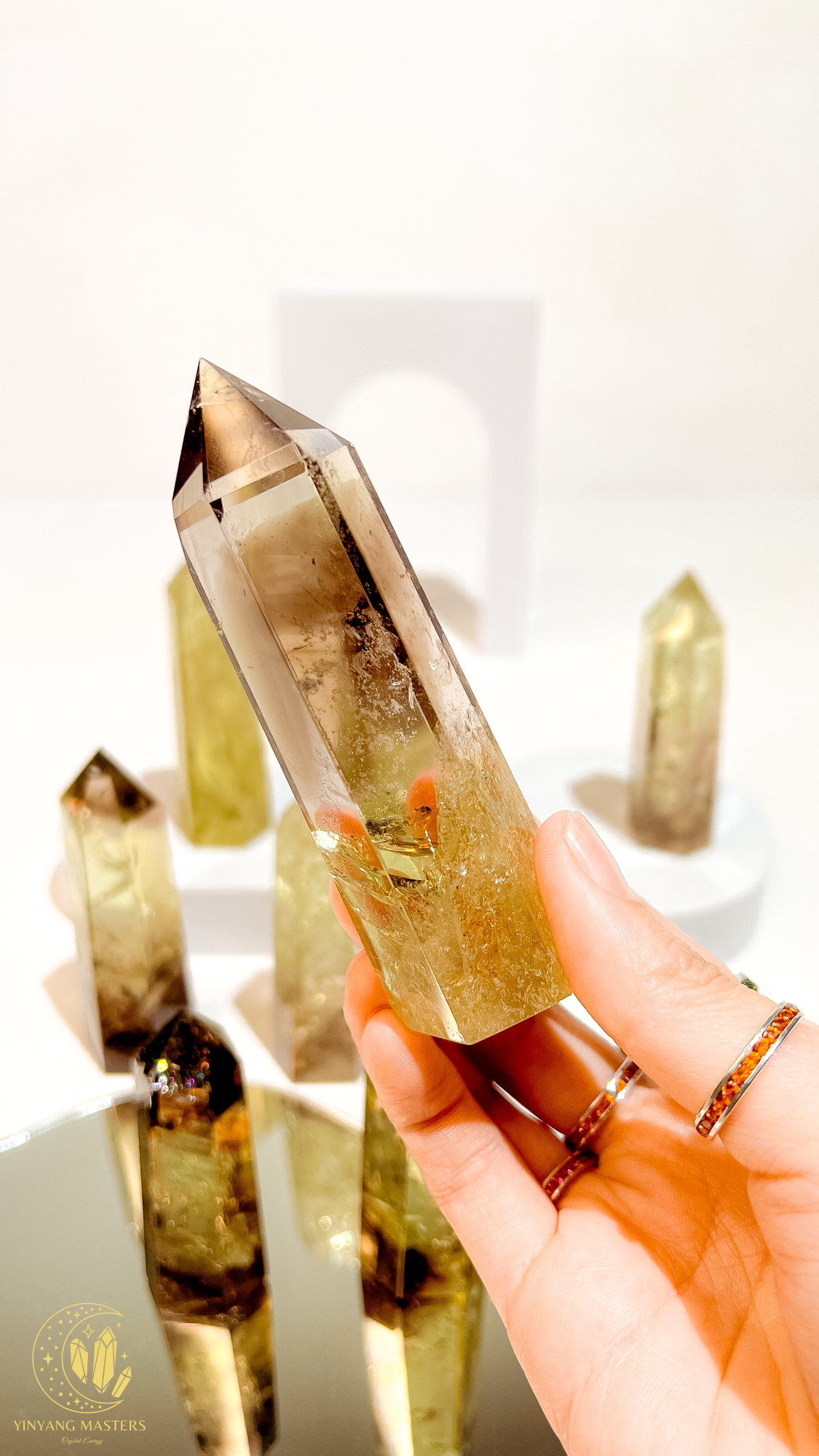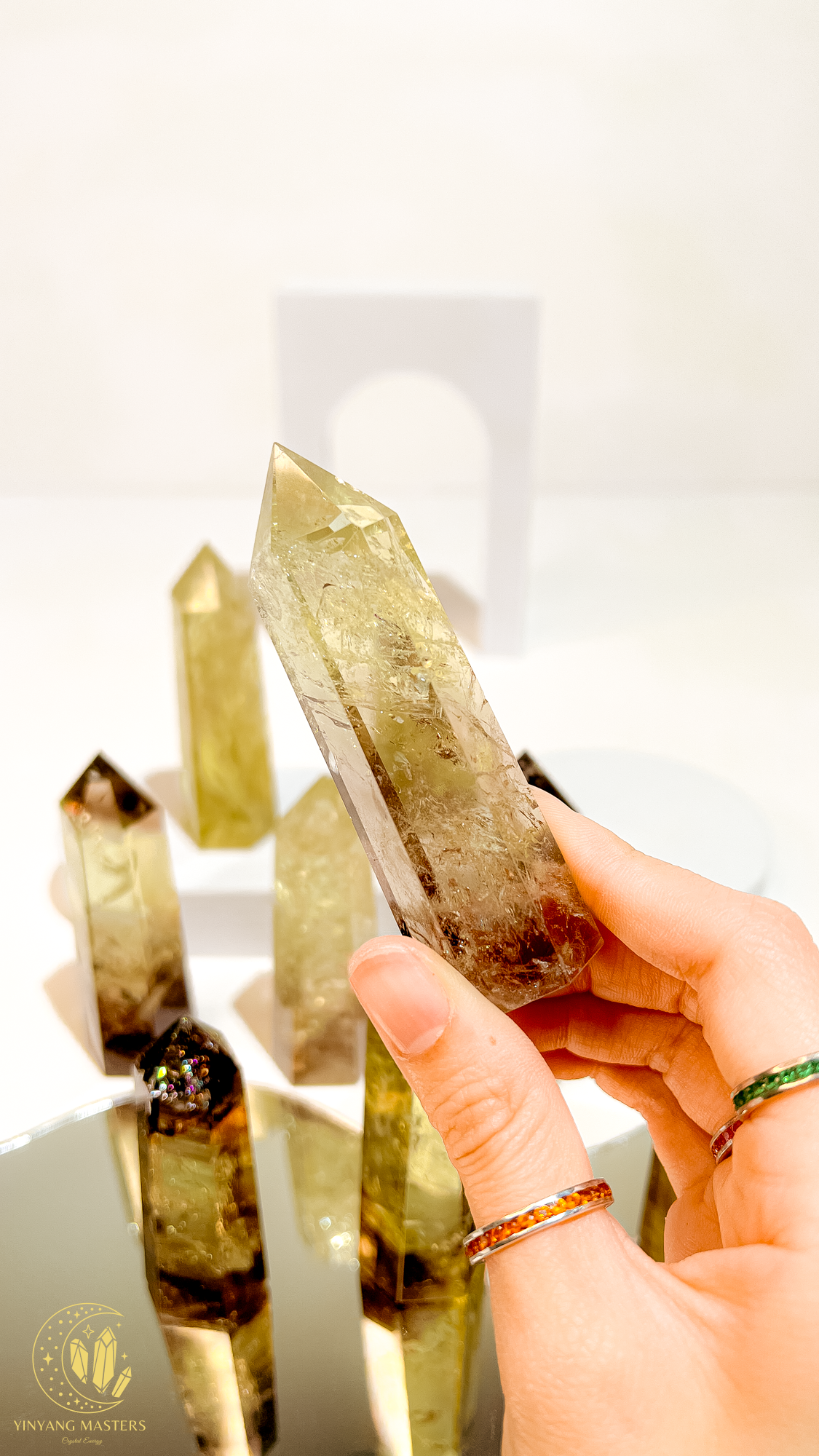 - Là sự kết hợp hoàn hảo giữa Thạch anh khói xám và Citrine vàng, viên đá năng lượng kép này hỗ trợ bạn năng lượng và sức mạnh bất ngờ.